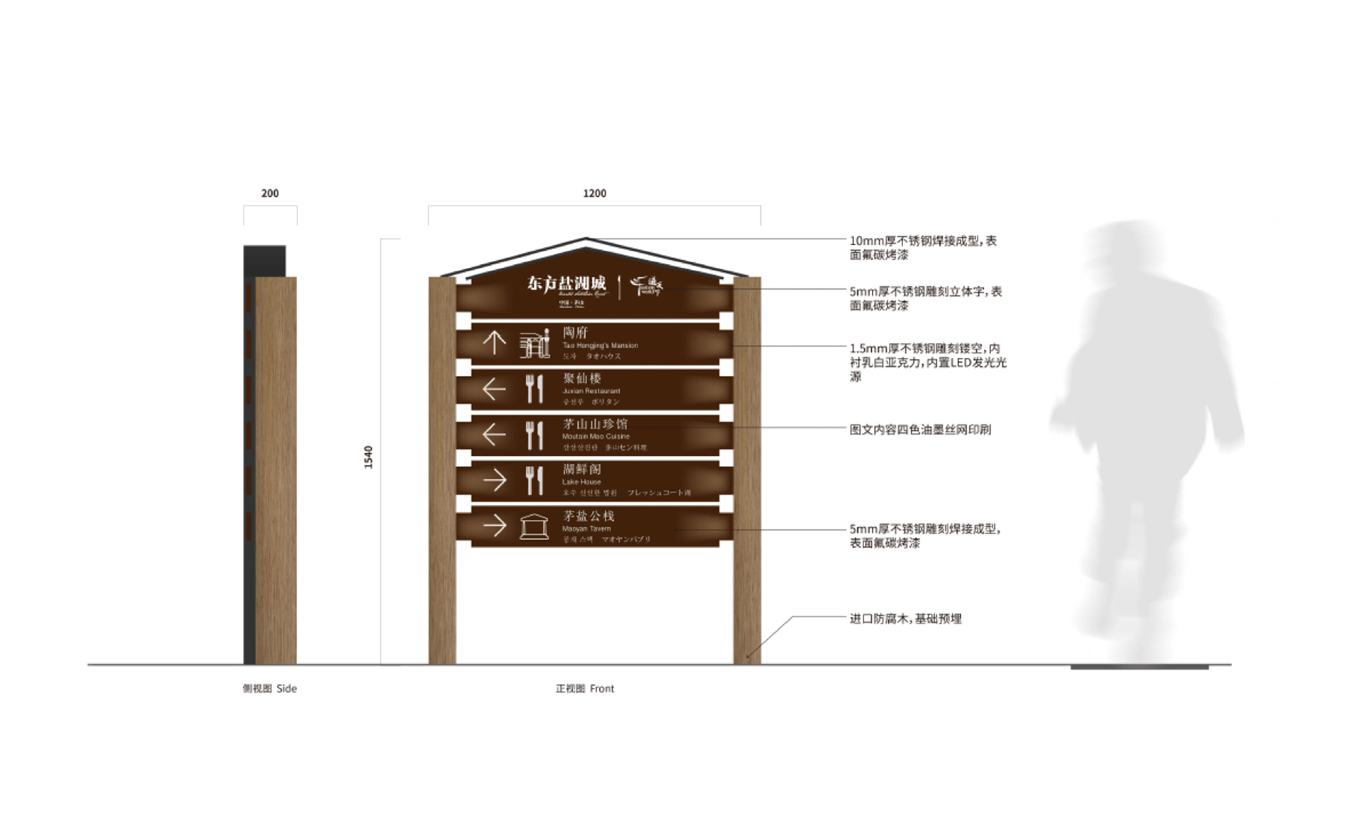 和與德通過多次實地勘察與會議調研,分析診斷原有導視系統存在的“硬傷”(游客看不見、看不懂、找不到等問題)并提出了針對性的解決方案;以標準性、可達性、有效性等設計原則為基礎,重新科學規劃了景區交通動線、合理劃分了各功能布局并有效設置了各類標牌點位;深挖景區核心“道教文化“基因,剖析魏晉風格的建筑特點,最終提煉出”應物“的設計概念,巧妙貫穿于整體導視系統設計中。