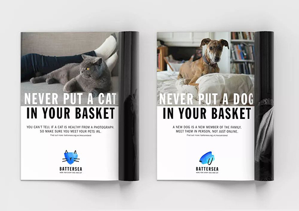 相比之下,新的標(biāo)識(shí)打破這一細(xì)分市場(chǎng)的常用手法,采用非常迷人的狗和貓的水彩畫,黑色的耳朵、胡須、鼻子更是奇思妙想的一筆,大寫文字表達(dá)出意思嚴(yán)肅,整體可愛(ài)又與眾不同。