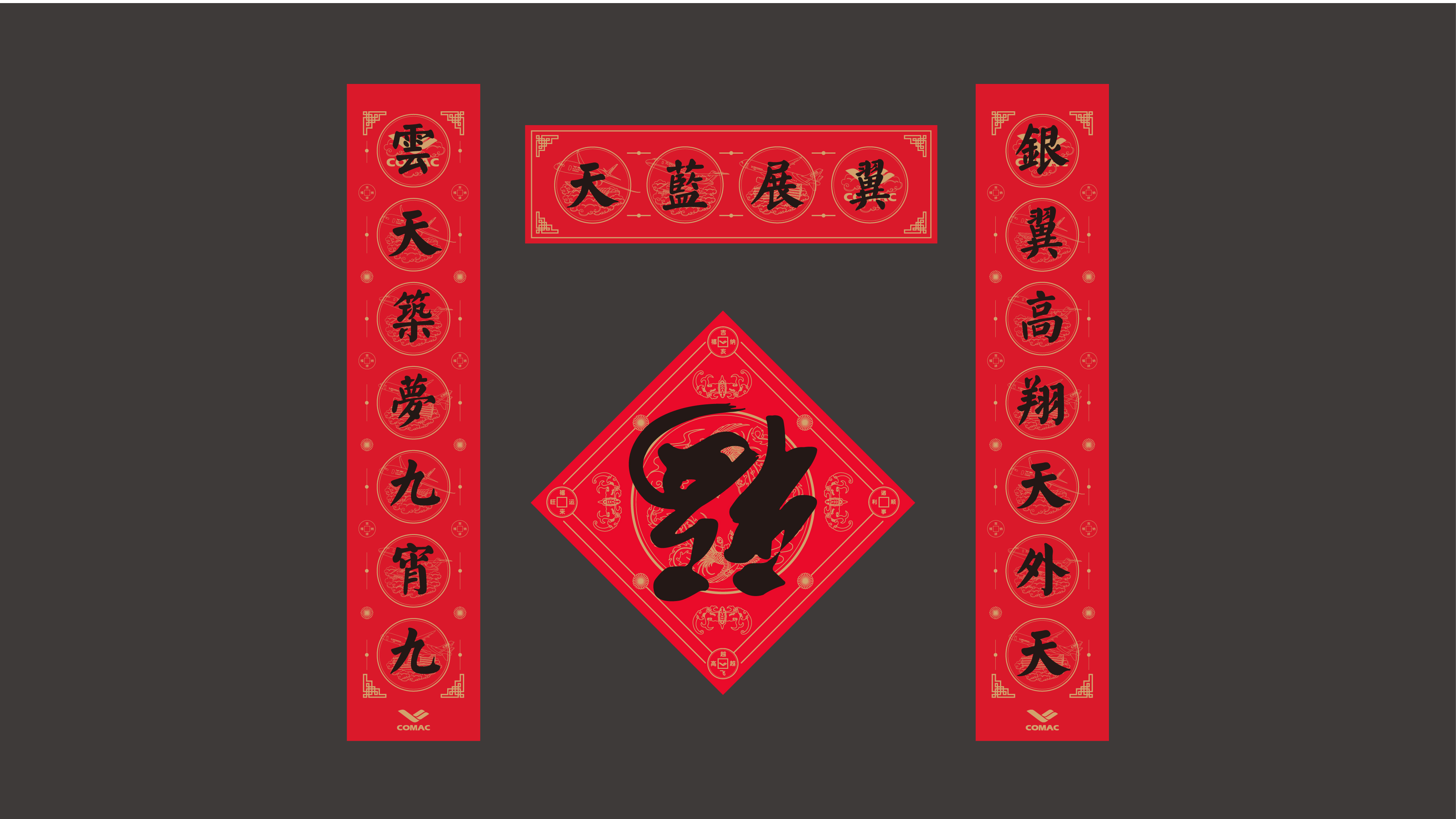2020年是上海飛機(jī)設(shè)計研究院成立50周年,和與德為客戶設(shè)計了50周年紀(jì)念徽章、旗幟、紀(jì)念牌、紀(jì)念服、紀(jì)念品禮盒等文創(chuàng)用品,贏得了顧客的一致好評,和與德以此贏得持續(xù)服務(wù)的機(jī)會,為其設(shè)計了春聯(lián)、春節(jié)紅包、手機(jī)殼、挎包、絲巾等一系列文創(chuàng)用品。